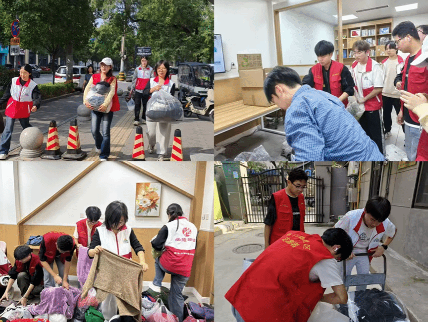 团委组织本科生前往工行西二路家属院开展“衣暖人心”秋季旧衣捐赠活动。通过旧衣收集、分类整理、爱心传递等形式,为社区居民搭建闲置衣物再利用的公益平台,统一送往大山传递温暖,用实际行动践行环保理念与互助精神。