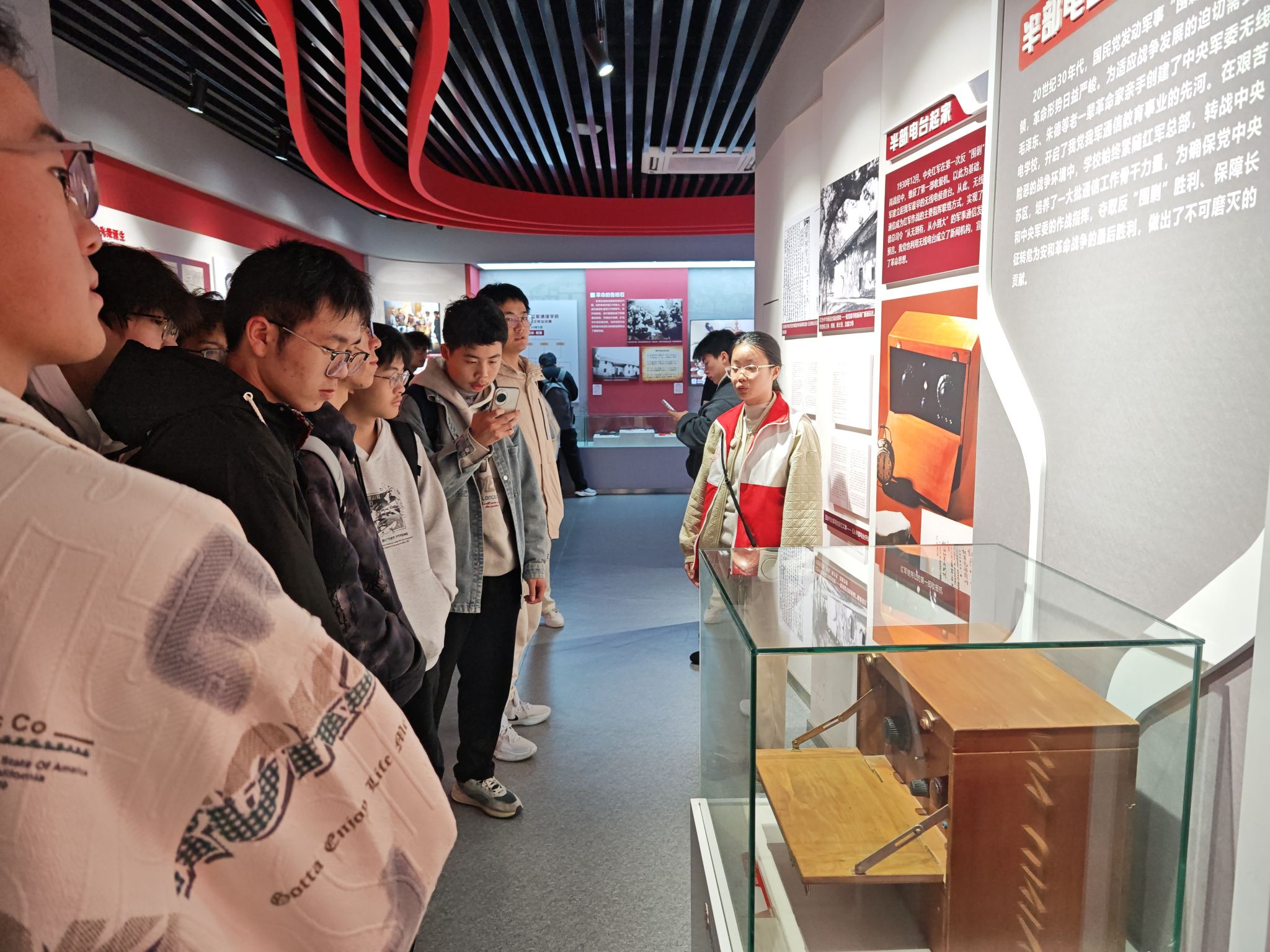 在校史馆内,学生们沿学校发展时间轴探寻初心使命。从战火纷飞中诞生的革命历程,到新时代蓬勃发展的办学成就;从老一辈科研工作者攻坚克难的奋斗事迹,到一代代西电人“艰苦奋斗、自强不息”的精神传承,一幅幅珍贵老照片、一件件承载记忆的实物展品、一段段详实的文字介绍,让学生们全方位掌握了学校在人才培养、科学研究、社会服务等方面的辉煌成就。在讲解员的细致解读下,学生们驻足凝视、专注聆听,不时交流探讨,深切体会到学校始终与国家和民族命运紧密相连的责任担当。
