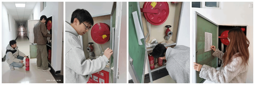 消防安全检查岗位上,同学们认真听取讲解,掌握消防器材使用与检查要领,并对指定区域实施全覆盖排查。在“学做结合”中,大家提升了安全意识与应急能力,为平安校园筑牢一道青春防线。