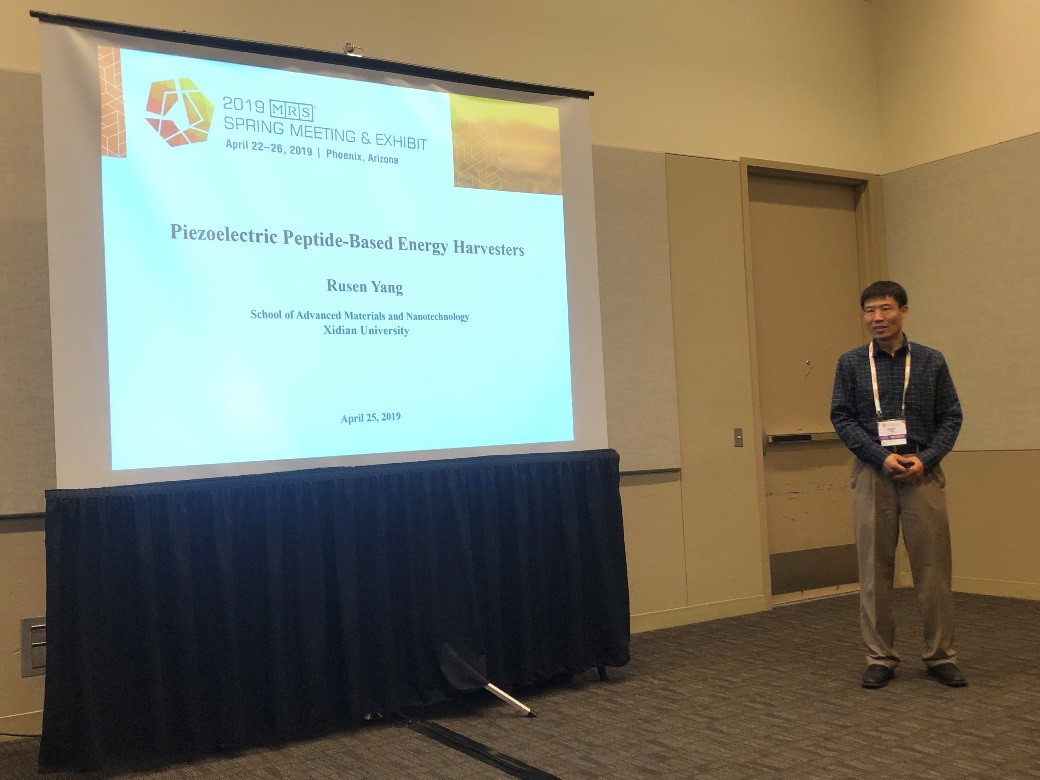当地时间4月22日,材料科学领域顶级国际学术会议——美国材料研究学会(Materials Research Society)2019年度春季会议在美国菲尼克斯召开,杨如森应邀在大会上作了题为“Piezoelectric Peptide-Based Energy Harvesters”的特邀报告。报告会上,杨如森利用本次珍贵的展示机会,向与会人员介绍了学院师资队伍、学科建设、科学研究、实验平台等发展现状,宣传多层次的引才政策,向参会代表伸出了橄榄枝。在会议期间,还通过设立学院相关介绍的展台等多种方式展示我院发展成就,在广泛宣传交流后共有44名海外优秀学者做了就职意向登记。