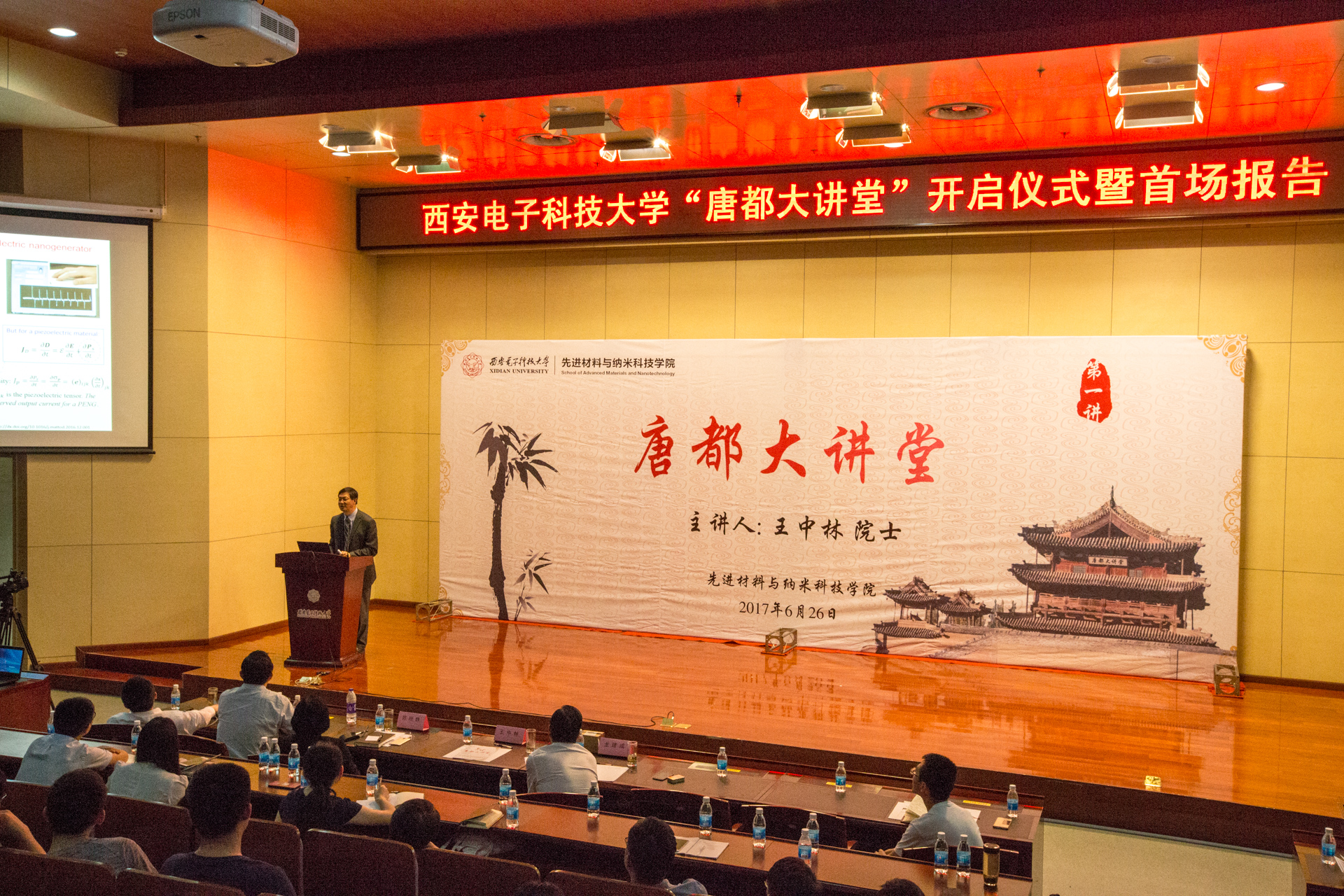 为了进一步开阔西电广大教生的国际化视野,紧跟材料学科的国际前沿,加强学术交流,进一步营造“崇尚学术、追求卓越”“崇尚学术、回归工程”的氛围,精心打造了“唐都大讲堂”。“唐都大讲堂”首讲请到了西电人耳熟能详、引为骄傲的著名纳米科学专家王中林院士。王中林院士一直关心关注母校发展,他的报告扩展了西电师生的视野,他的科学精神令人感动,让人深受启发。