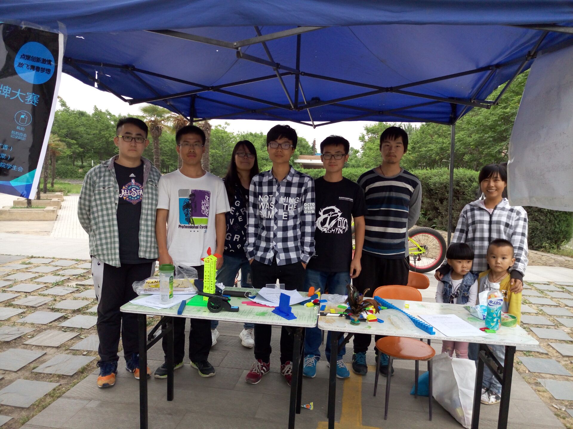 学生会在丁香餐厅旁举办了多米诺骨牌大赛的宣传报名外场。