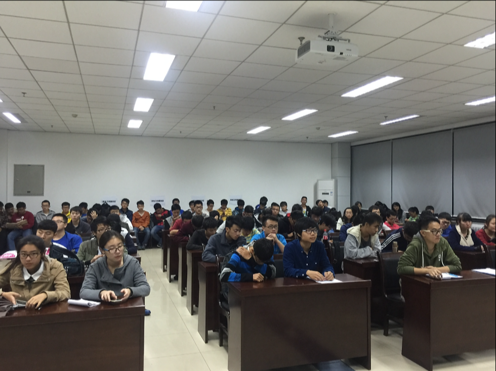 于G楼118举办四六级考试动员大会,14级辅导员李伟嘉主讲,全体14级成员参加了此次大会。