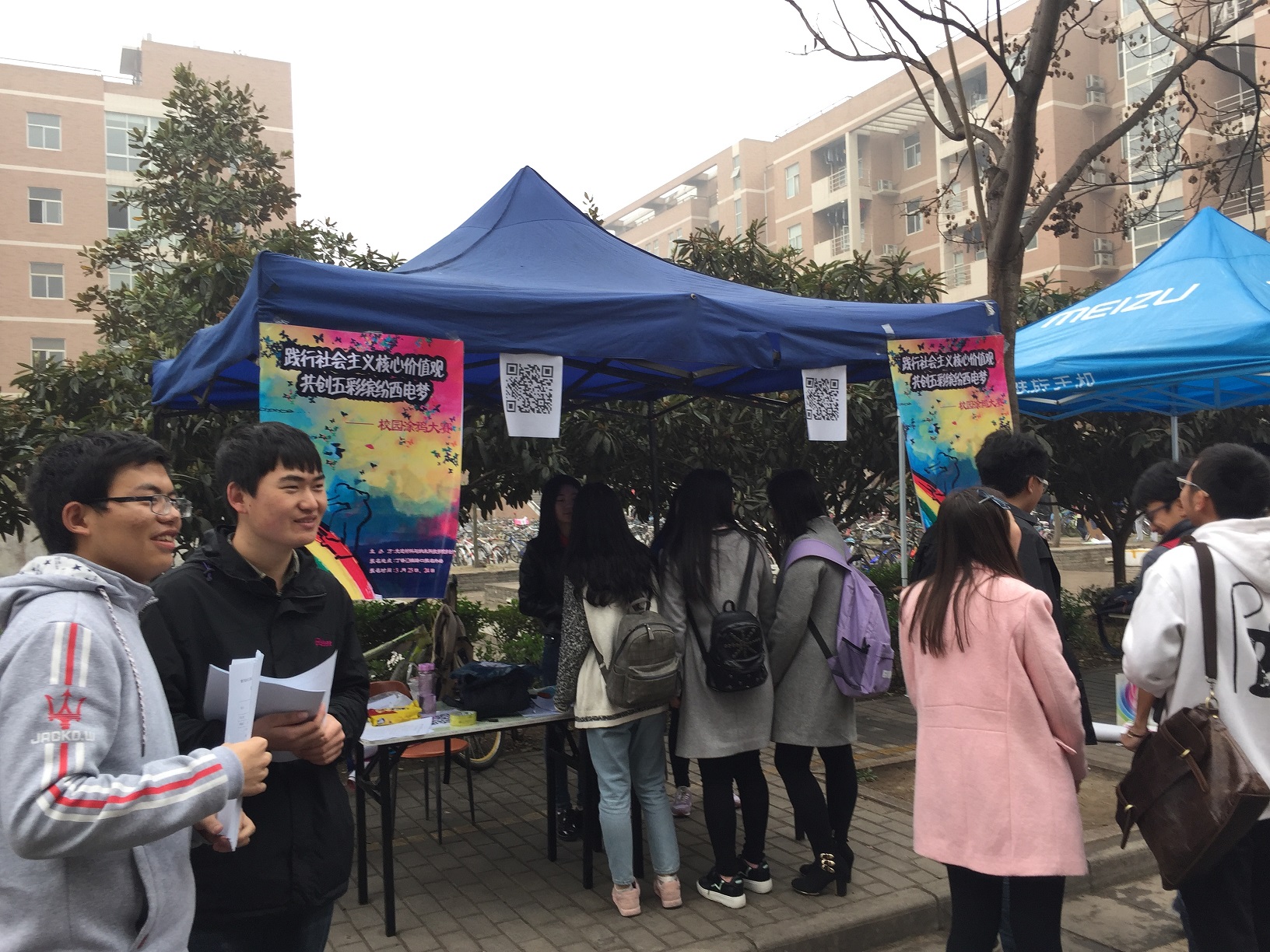 学生会在丁香公寓外举办校园涂鸦大赛的宣传报名外场。