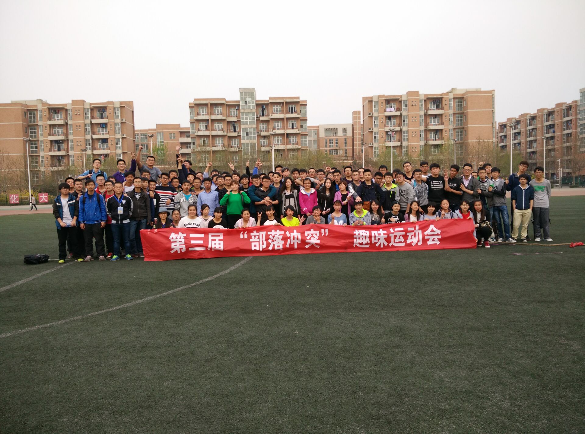 在南校区北操场成功举办趣味运动会,院党委书记黄伟、办公室主任卢琳、团委书记刘男、辅导员李伟嘉、钟决坤、学院教务干事赵群、班主任杨眉、张鹏及全体大一新生和院学生会骨干参加了此次活动。本次趣味运动会以“部落冲突”为主题,将老师和学生分为四个部落,大家高度配合,在操场奋力拼搏。