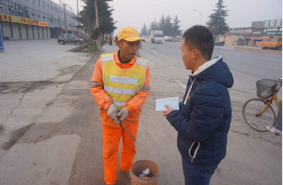 舆香志愿者队一行人沿着西沣路寻找正在工作的环卫工人,跟他们嘘寒问暖,为他们发放口罩,帮他们做清扫工作;在和他们的交谈中,我们了解到到大部分环卫工人都是年过五旬的老人,却需要每天早晨六点起床工作到中午十一点,非常辛苦。受到帮助的老人都露出了欣慰的笑容,其中一位热心的环卫工人提醒我们走路或坐公车的时候把包背在前面,注意看管自己的财物,避免被盗。我们的志愿活动受到路人的围观,大家对我们的活动给予肯定,表示我们这样的活动做得很好。