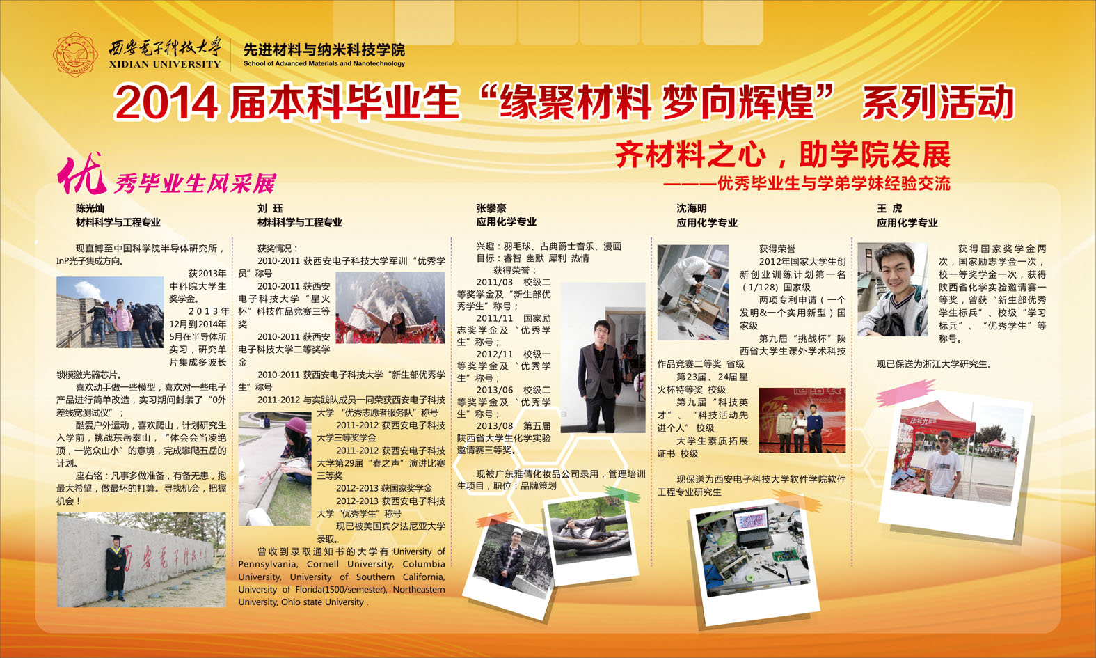 的学子们像五位学长学习,在学习、工作、学生活动各方面展现自己的风采。