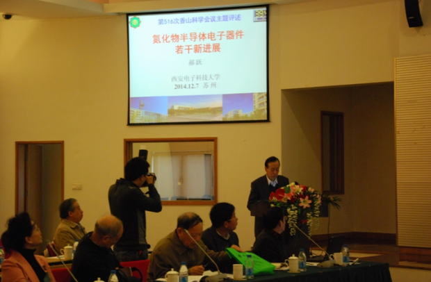 院长郝跃教授担任执行主席,北京大学沈波教授,香港科技大学陈敬教授以及中科院苏州纳米所杨辉研究员担任会议共同执行主席。来自国家自然科学基金委员会、中国科学院、西安电子科技大学、北京大学、清华大学、南京大学、上海交通大学、香港科技大学、电子科技大学等多家单位和高校以及中电科技集团、华为技术有限公司、中兴通讯公司等产业界在内的多名院士和40多位专家学者参加了本次会议。