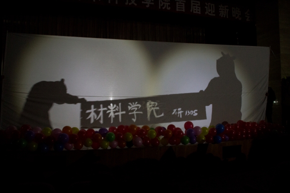 晚会由研一新生带来精彩非凡的影子舞作为开场,“啤酒起子”乐队充满动感的歌曲将大家带入一片音乐的海洋,数 统学院同学带来别开生面的广播操,辅导员们精心准备的哈萨克舞蹈嗨翻全场,妙趣横生的哑剧《江南style》,欢笑不断 的小品《西游记》,节目间的互动环节及抽奖活动更是将现场气氛推向一个又一个的高潮。除此之外,神秘的魔术、好看 的动漫T台秀、小品、民乐演奏、脱口秀、恢弘的武术表演也各具特色,异彩纷呈。在演出之余,现场还播放了领导和同 学们对学院的祝福,令人感动,与此同时,同学们积极参与微博墙时时互动,表达了自己对晚会的支持。最后晚会在歌曲 《相亲相爱》中完美落下帷幕。