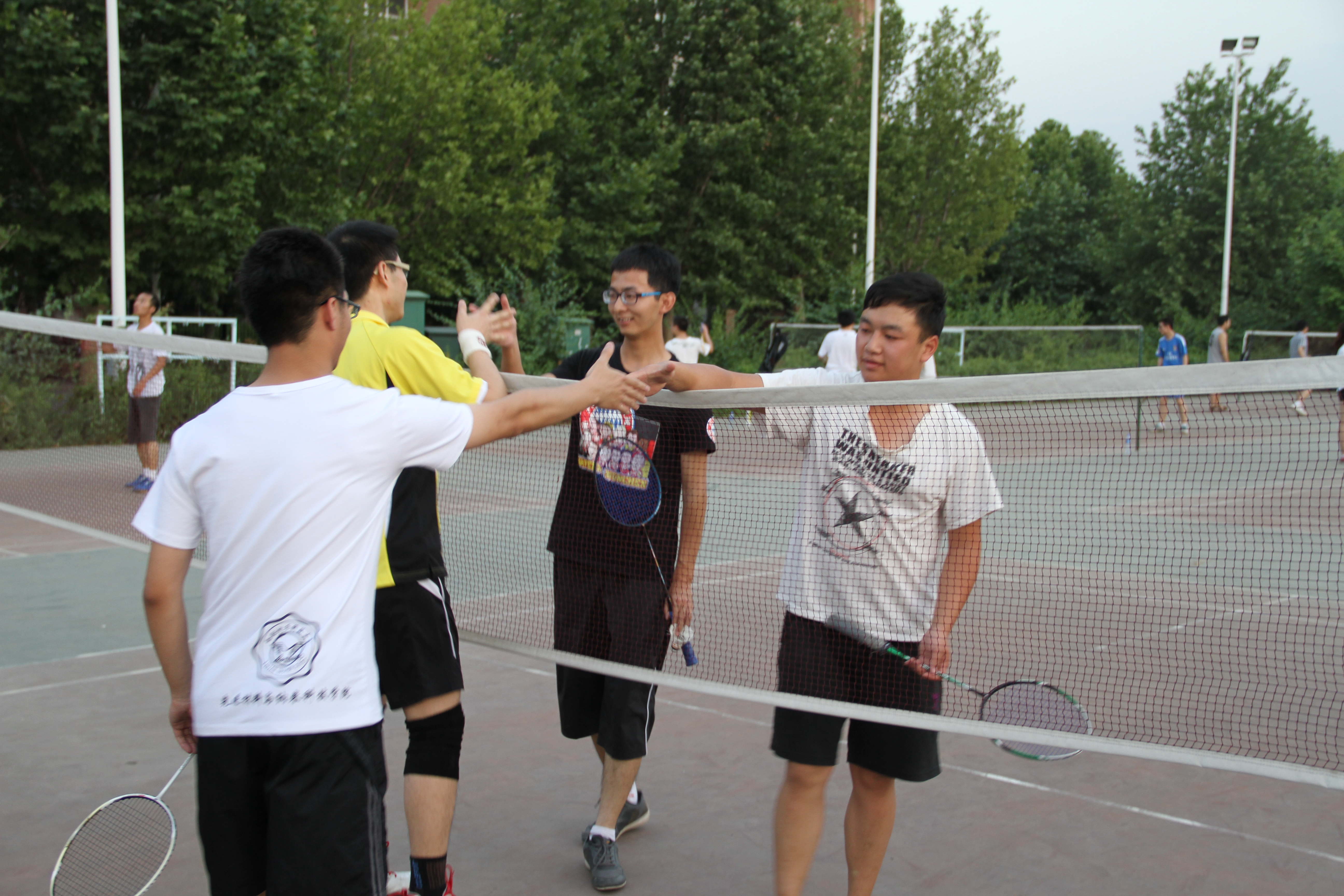 毕业季系列活动的第一站带领同学们来到了大二以后便很少集体出现的操场,6月10日晚七点,毕业生与学院老师在新校区北操场进行了一场主题为“集材料之力,展青春风采”的“师生”羽毛球友谊赛。比赛的六名同学分为两组混双,一组男双。首先是材料班邱志发和杨会搭档出场的混双组合,迎战学院办公室的两位老师组合。双方在球场上杀的难解难分,精彩的扣杀和救球不断出现,最终还是老师们的经验和技术更胜一筹,以2:0获胜。随后出场的一组混双比赛在10级化学班两位同学与老师之间展开,结果仍旧是老师组获胜。比赛的高潮出现在压轴上场的男双比赛上,学院助管高新华和教务处老师赵群强强联合,迎接材料与化学班的双强组合,两位老师一攻一守,比赛节奏张弛有度。双方精彩的表现迎来了观战同学的阵阵喝彩,比分也在同学们的掌声和叫好声中交替上升。最终两位老师凭借在多拍拉锯战中冷静的处理赢下了关键分,取得了比赛的胜利。比赛结束后,学院团委书记刘男老师为同学们颁发了奖状,并向参赛的老师和同学赠送了纪念品。