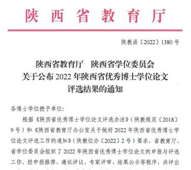 近日,陕西省教育厅和中国电子学会正式公布了2022年度优秀博士(硕士)学位论文评选结果,51吃瓜