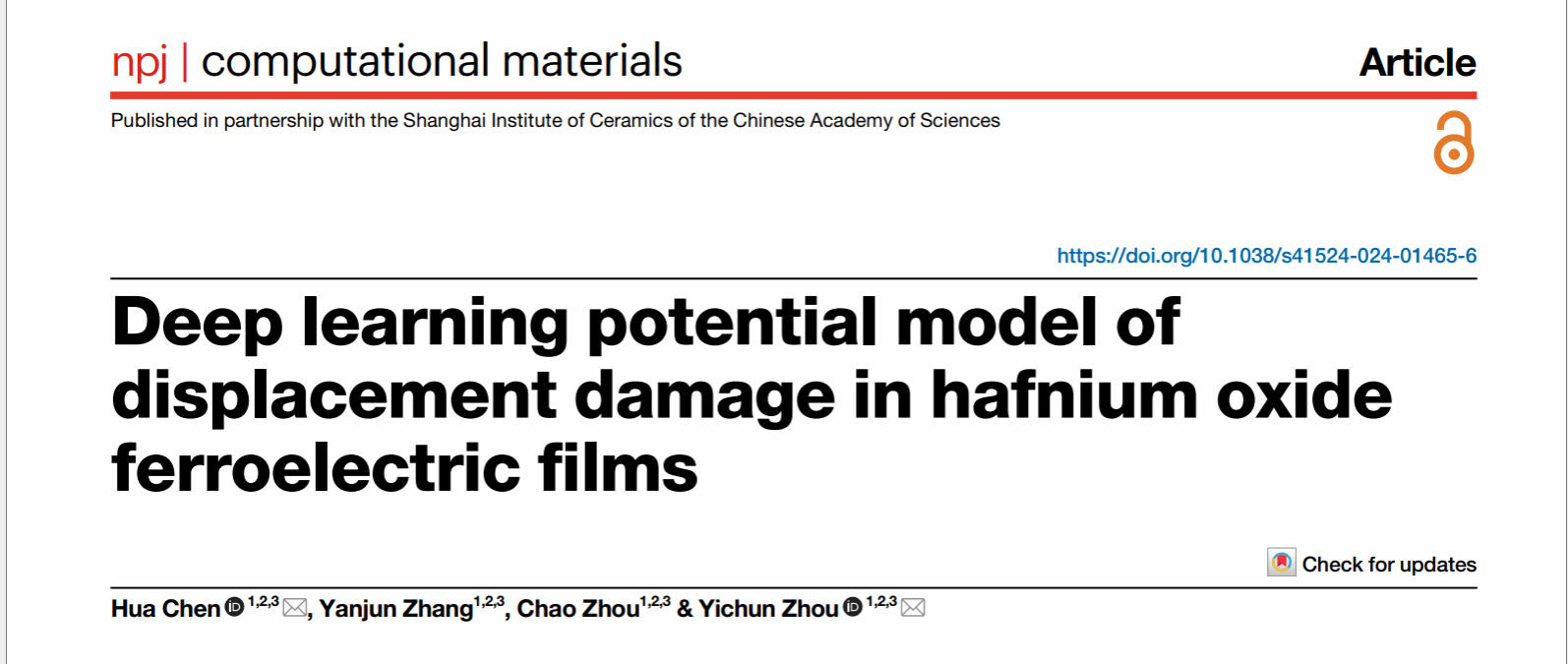 周益春教授研究团队在HfO2铁电薄膜辐照效应领域取得突破。该研究采用深度学习与排斥表相结合的方法,开发了一种适用于HfO2铁电薄膜的势函数,将密度泛函理论(DFT)的高精度与分子动力学的高效性相结合,为HfO2铁电薄膜在辐照环境下的位移损伤研究提供了创新性的解决方案。