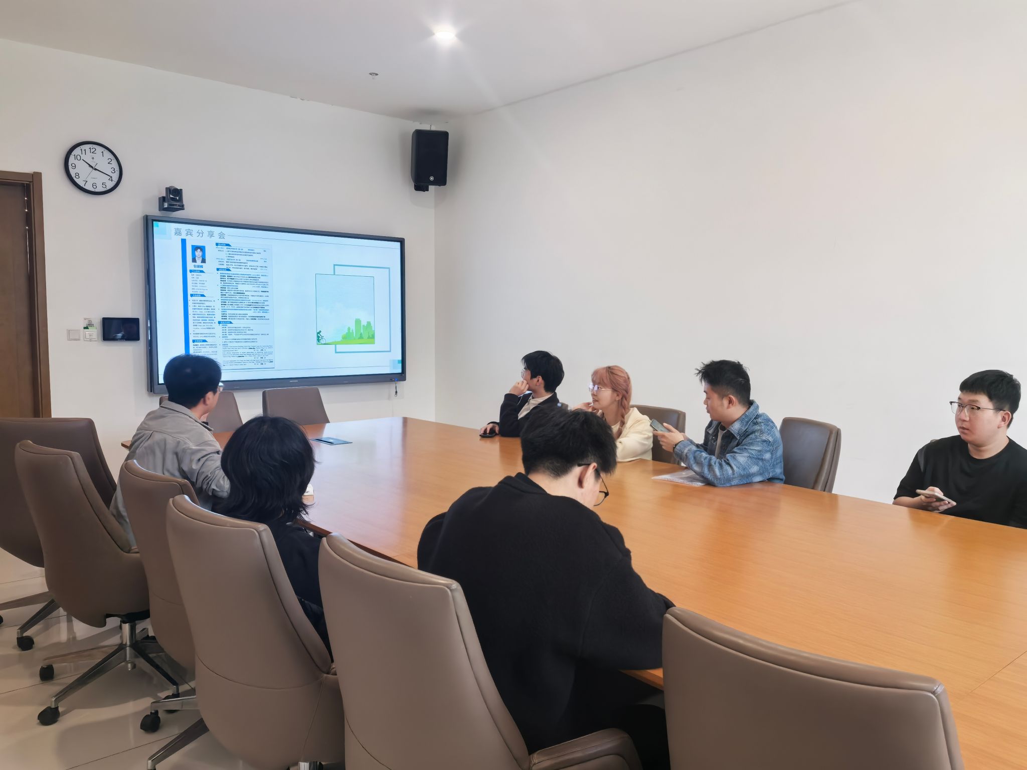 在备受期待的嘉宾分享环节,党支部邀请3 位2025届研究生毕业生开展交流。汪彦勇、谯云、包银辉结合自身求职经历,从行业选择、简历制作要点、面试技巧等方面进行了详细的讲解。其中,成功入职华为技术有限公司的毕业生包银辉同志,着重强调了简历内容要突出与目标岗位的匹配度,用具体的项目成果和数据展现个人能力。这些宝贵经验让在场同学深受启发,现场互动频繁,同学们纷纷就求职困惑向嘉宾提问,嘉宾们耐心解答,现场氛围热烈。