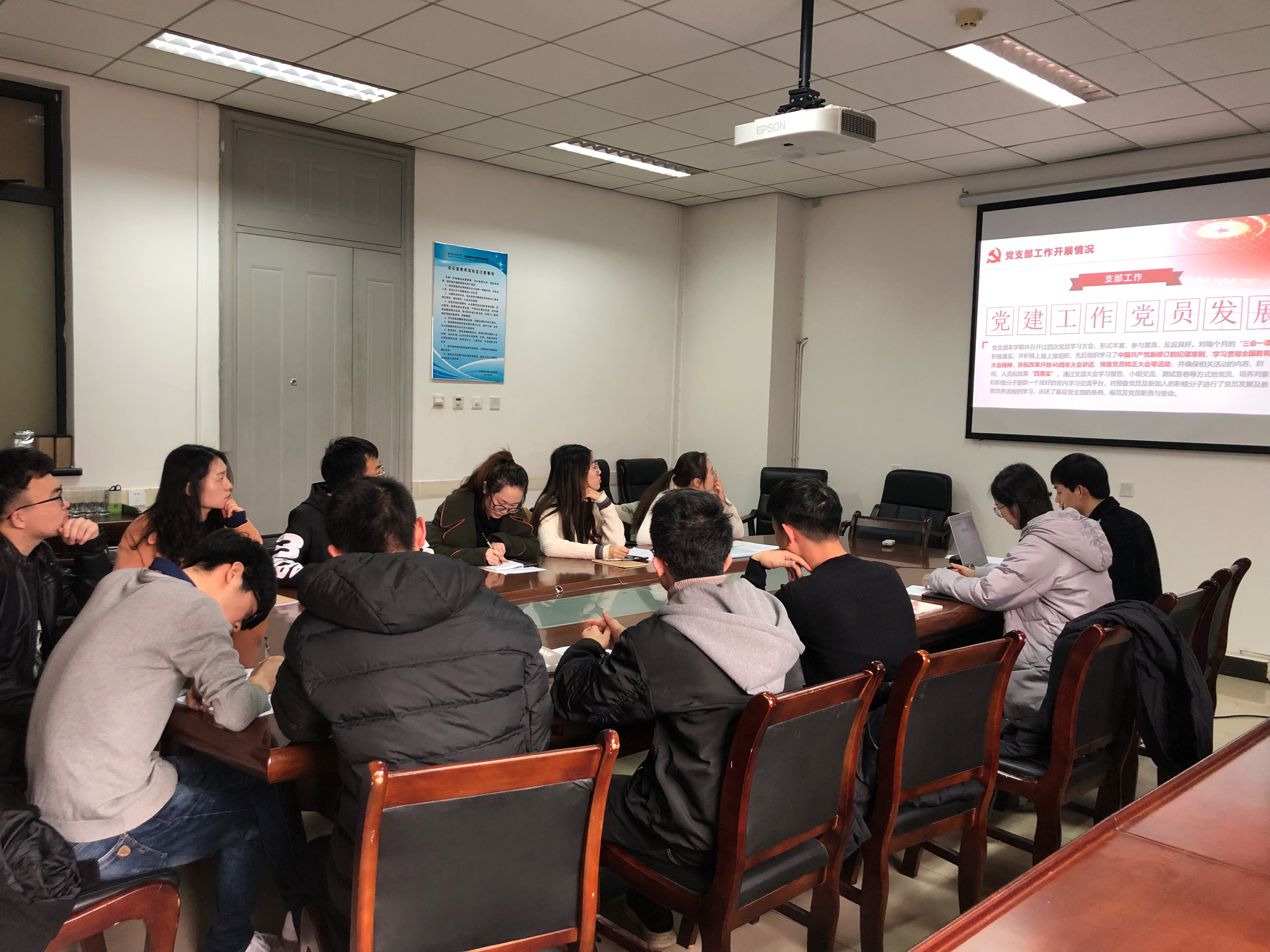 G119会议室举行,本次会议主要以党支部年度工作总结及党支部成员民主评议党员为主要内容展开。支部全体党员参会。