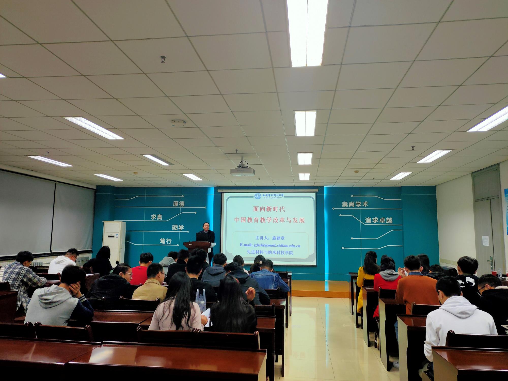 党委开展“不忘初心、牢记使命”主题教育实施方案,2019年10月30日晚上,学院党委委员施建章老师为本科生党支部讲了一堂内容新颖的党课,主题为《面向新时代中国教育教学改革与发展》,本科生支部党员参加学习。