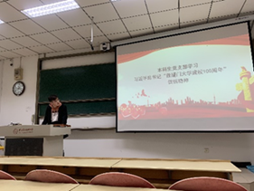 党支部书记刘瑞宇说:“习近平总书记在致厦门大学建校100周年贺信中不仅是对厦门大学百年来工作的肯定,在建党100周年这一关键时刻,更能感受到习近平总书记对于教育事业以及科研工作的重视。而我作为一名大学生党员,应该牢记习近平总书记的嘱托,加强自身的专业基础知识,培养科技创新能力,努力承担起历史交给我们的使命。”