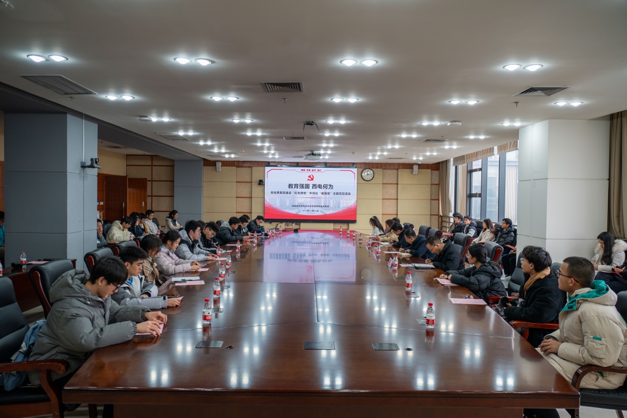本科生党支部在南校区举行“教育强国、西电何为”主题党日活动。学校党委副书记白旭东到会指导并做点评,学院党委书记宋刚锋、副书记陈刚参会,支部书记、本科生辅导员李逸君主持活动。