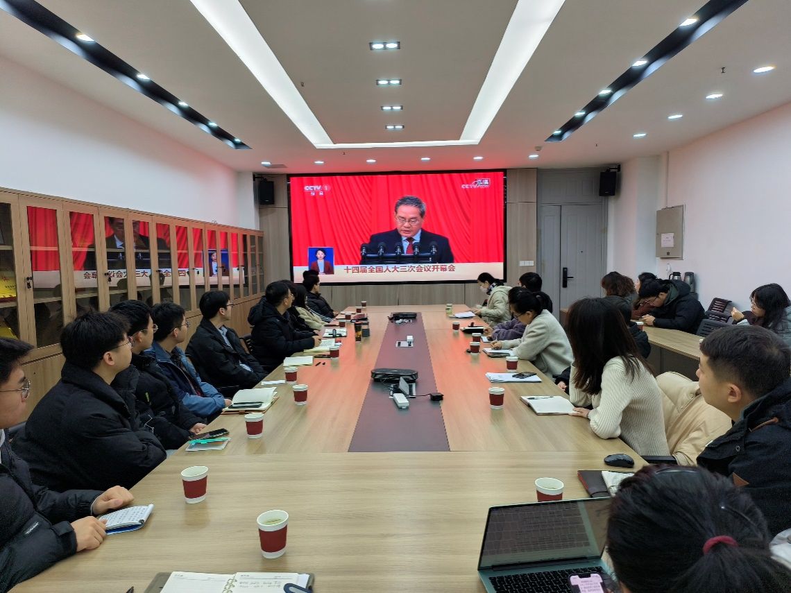 通过线上和线下相结合方式,组织师生通过电视、互联网和手机客户端等形式观看开幕式直播,热议政府工作报告内容。