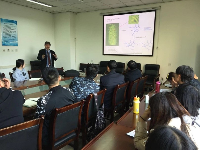 随后,Malcolm D. E. Forbes教授为我院师生作了题为“Photons, Radicals, Bubbles and Beer: Using Photochemistry and Electron Paramagnetic Resonance Spectroscopy to Understand the Universe”的报告。学院部分教师以及研究生聆听了此次报告会。报告会由杨如森主持。