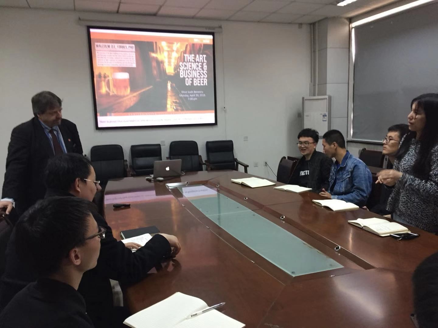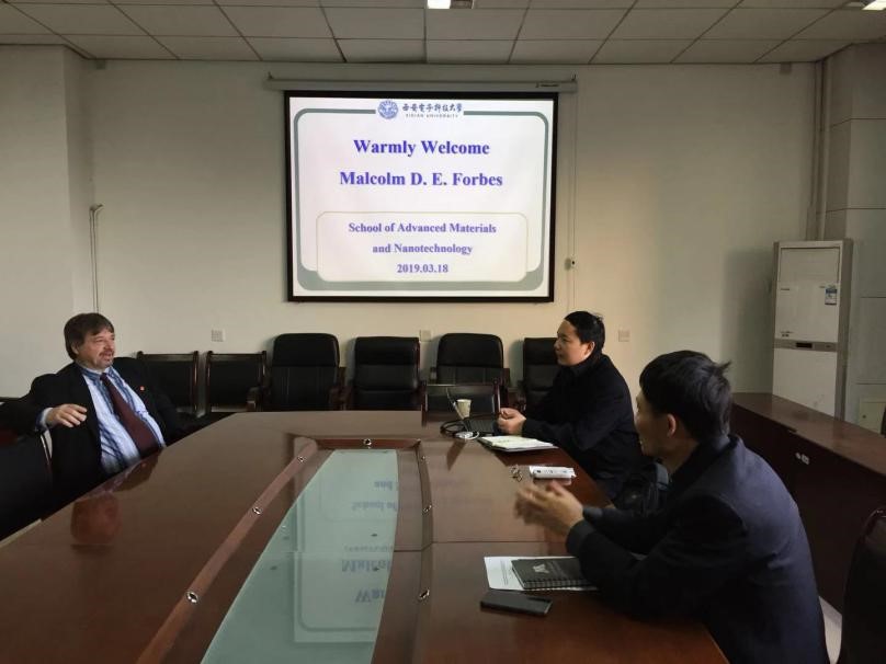 邀请来校交流访问。上午9点,学院副院长杨如森教授、院务助理施建章副教授、学院联系教师童晓梅副教授等与 Malcolm D. E. Forbes 教授在119会议进行了交流座谈,杨如森代表学院对 Malcolm D. E. Forbes 教授的来访表示热烈欢迎,在座谈中双方就未来的合作事宜进行了热烈的沟通与交流。