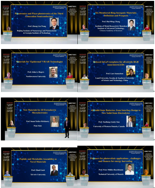 大会邀请到了多位能源、信息和材料领域的嘉宾发表主题演讲。包括王中林,成会明,John A . RogersLars Samuelson 10多位海内外院士,26位知名科学家。来自世界各地的能源、信息与材料领域的科学家在AMEIT2021会议上做了精彩的学术报告,深入讨论了这些领域的研究热点和最新成果,共同探讨了本领域发展趋势和科学问题。