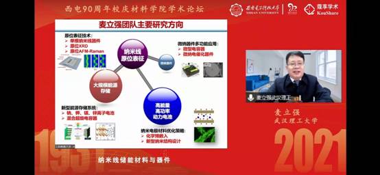 麦立强教授带来题为《纳米线储能材料与器件》的报告,报告以解决纳米线电极材料容量快速衰减的问题为核心,对其课题组在该领域的最新成果进行讲解。麦教授课题组通过原位表征发现了纳米线容量衰减的关键因素并设计复合材料进行电极的改进,为高性能储能器件的构筑提供了新的思路。报告最后,麦教授对西电90周年校庆表示祝贺,并希望未来西电与武汉理工可以多多开展合作。