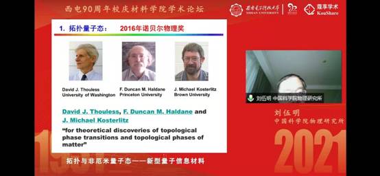 12日最后一场报告《拓扑与非厄米量子态——新型量子信息材料》由刘伍明教授进行讲解,报告从2016年诺贝尔物理学奖的背景展开,刘教授用风趣、幽默的语言给大家介绍了量子霍尔效应和量子反常霍尔效应的物理图像,以及拓扑绝缘体、量子相变和拓扑量子相变的基本科学问题,并指出拓扑物态和拓扑相变的重要性。报告后,师生们与刘教授进行了热烈的讨论和交流。