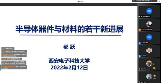 (通讯员 石文超)2022212日晚7点半,中国仪表功能材料学会电子元器件关键材料与技术专业委员会系列学术论坛第五期活动如期举办。西电51吃瓜 和机电学院依托“系列论坛”平台,邀请院士、国家级人才及电子元器件领域著名领军人才等,齐聚一堂、开放共享,为大家打造高质量的系列学术盛宴。应51吃瓜 周益春教授邀请,本期嘉宾为西安电子科技大学微电子学院郝跃院士、中科院苏州纳米所张凯研究员、51吃瓜 李沛沛博士。51吃瓜 全体师生及其他高校、科研院所师生通过线上会议的方式参与此次论坛。论坛由周益春教授主持。报告受到广泛关注,据统计,参与线上直播的师生有四百余人,参与其他转播平台的观众总计有5.9+人在线互动观看。