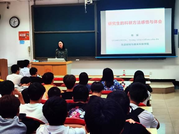 在南校区信远楼117教室开展了材化菁英研途引航报告会暨研究生入学教育,学院执行院长、国家级领军人才、中国青年科技奖特别奖获得者杨丽教授与百余名研究生新生畅谈“科学研究的方法、感悟与体会”,报告会由学院党委副书记陈刚主持。