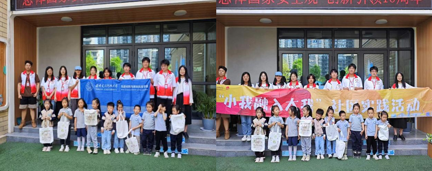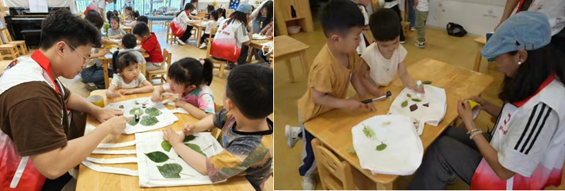 舆香志愿队带领本院4个团支部13名志愿者前往高新区第五十三幼儿园开展非遗植物拓印活动。本次活动带领幼儿园100余名小朋友体验非遗植物拓印技艺和一系列有趣的科学实验,激发了孩子们对非遗文化的热爱和对探索科学奥秘的热情。