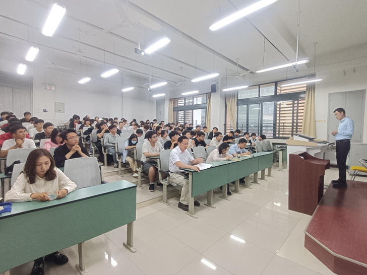 施建章对学院2025届推免政策进行介绍,从推免政策目的、原则、资格基本条件、综合测评主要内容及2025届推免细则主要变化进行讲解,强调“推免政策是以引导、激励在读学生勤奋学习、全面发展,选拔优秀、拔尖、创新、特色人才进一步深造为目的,希望同学们能够做到成绩优秀、能力素质拔尖、科研能力创新、具有综合发展潜力,成为全面发展的人才。”