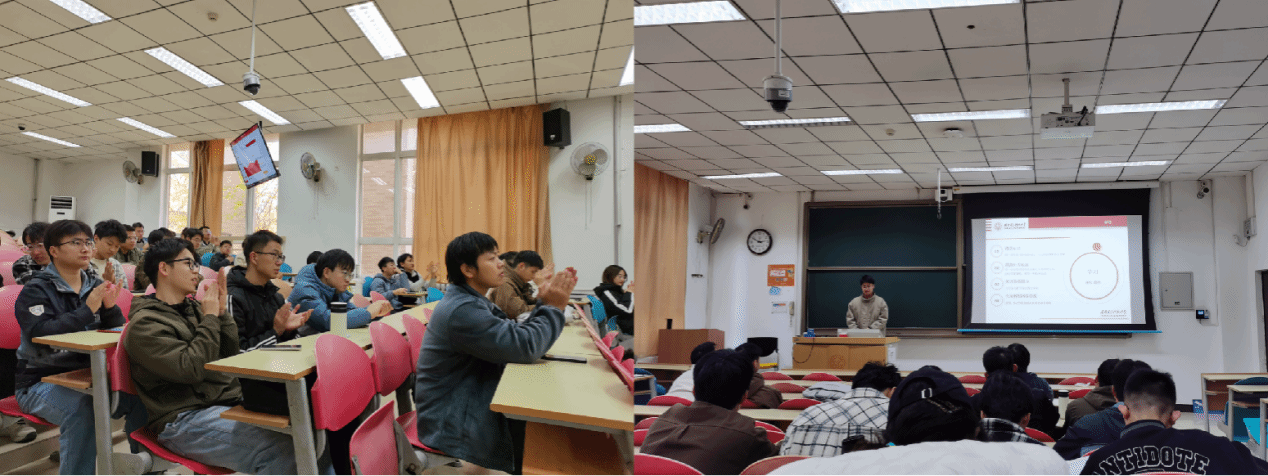 在南校区信远楼Ⅰ区117教室举办2024年国家奖学金获得者经验分享会,四位国家奖学金获得者和全体2024级硕士研究生参会。