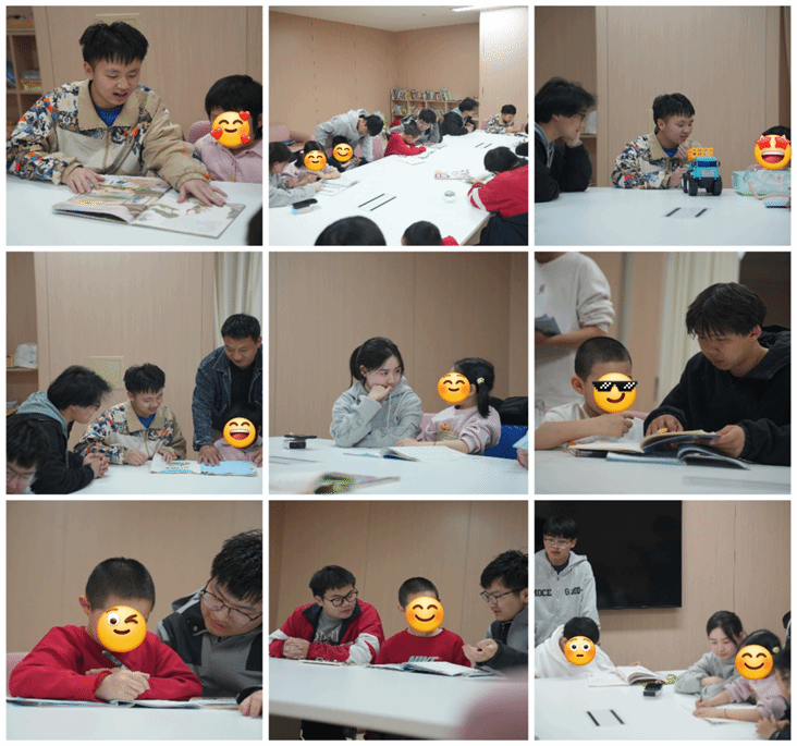 在儿童康复科的教室内,志愿者们化身小老师,根据孩子们的学习需求进行一对一辅导。在文化课辅导环节,志愿者们耐心地为孩子们讲解语文、数学等学科知识,帮助他们巩固课堂所学。对于孩子们提出的问题,志愿者用生动有趣的方式一一耐心解答,帮助他们理解的同时让知识在轻松愉快的氛围中悄然传递。此外,志愿者们还准备了手工材料和故事绘本,陪伴孩子们一起做手工、讲故事,现场气氛其乐融融