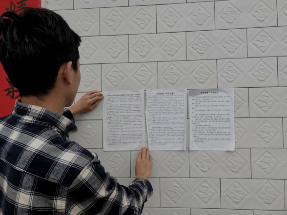 化身宣传卫士,传递人间真情。2018级学生毕昌恒在社区中广播进展,粘贴疫情防控知识,用声音传播科学,用双手张贴温暖,以“小善”传大爱,为大家加油鼓劲。